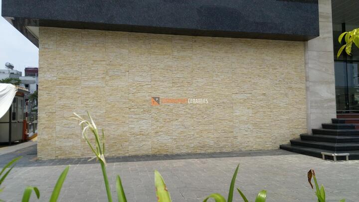 Đá ghép vàng ốp tường phù hợp sử dụng trong trang trí nội thất, ngoại thất và cả phòng tắm.
