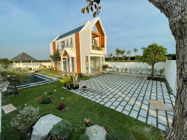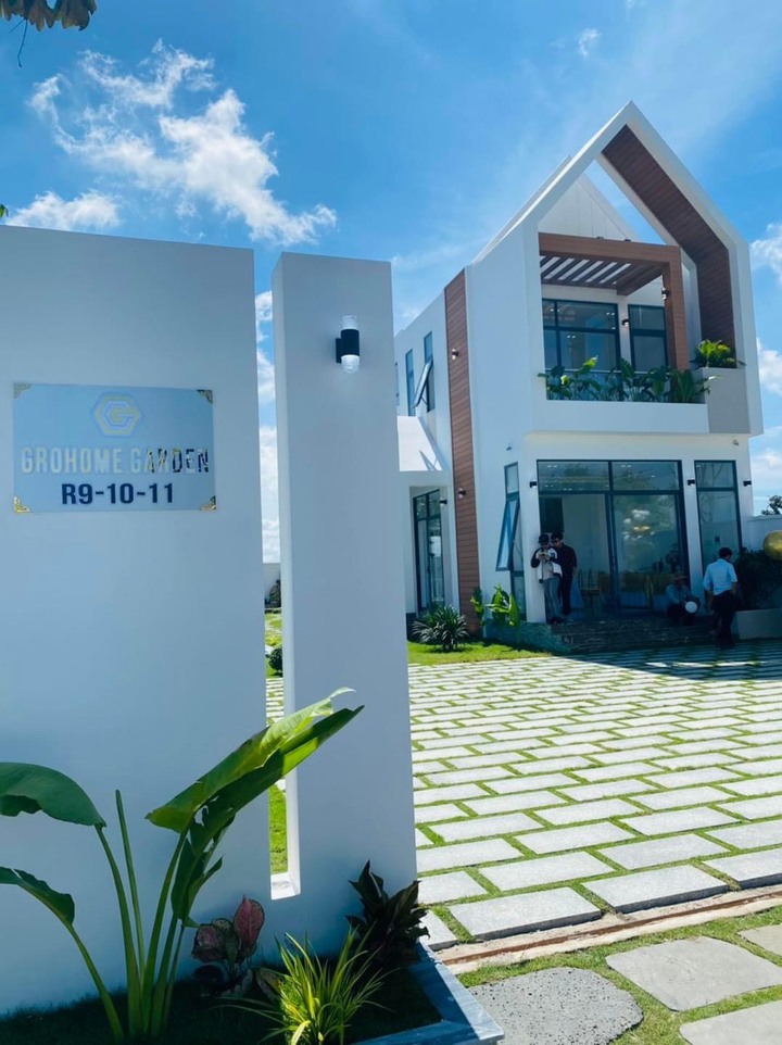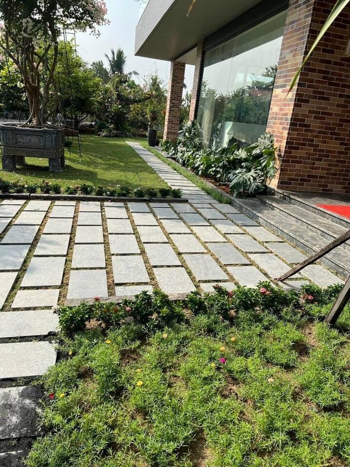 Đây là ứng dụng phổ biến nhất. Đá trắng khò giúp không gian sân vườn trở nên sáng sủa, sạch sẽ và cực kỳ sang trọng.