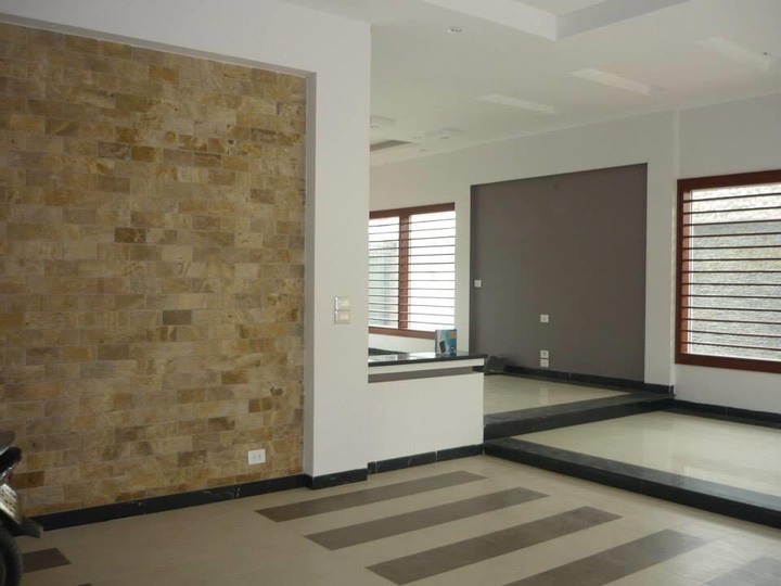 Ốp tường phòng khách: Đá ốp tường mài socola giúp phòng khách trở nên sang trọng và ấm cúng hơn.
