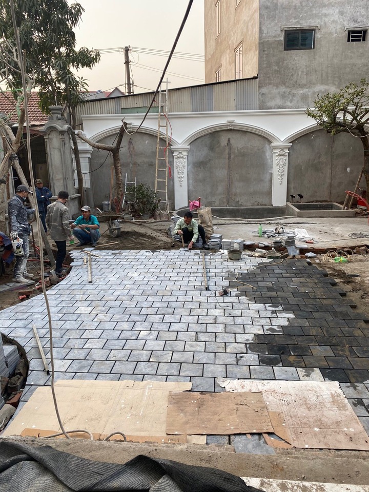Lát đá: Dùng búa cao su để cố định đá và tạo độ phẳng.Chừa khe ron đều để tạo sự cân đối và đẹp mắt.