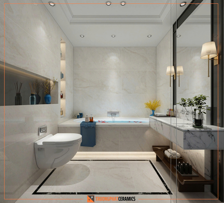 Kích thước lớn: Giúp tạo không gian liền mạch, rộng rãi và giảm số lượng đường ron. Các kích thước 60x120cm, 80x160cm là những lựa chọn phổ biến.