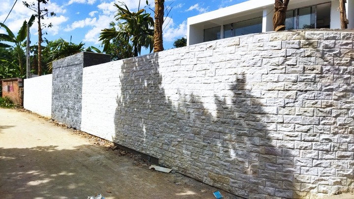 Ốp tường ngoại thất: Mặt tiền nhà, tường rào, trụ cổng, tiểu cảnh sân vườn, mang lại vẻ đẹp tự nhiên và mạnh mẽ.