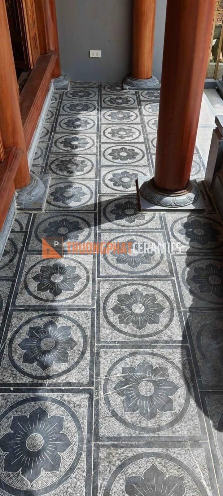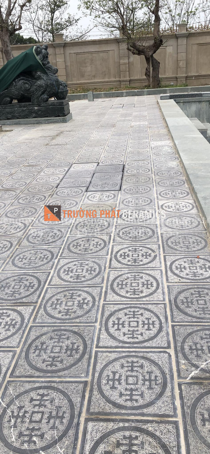 Bên cạnh những họa tiết tự nhiên, đá xanh đen còn được chế tác thành những họa tiết hình học như vuông, tròn, tam giác… Sự kết hợp giữa các hình khối đơn giản và màu sắc trầm ấm của đá xanh đen tạo nên một vẻ đẹp vừa cổ điển vừa hiện đại. Những họa tiết hình học này thường được sử dụng để tạo điểm nhấn cho không gian, mang đến cảm giác cân đối và hài hòa.