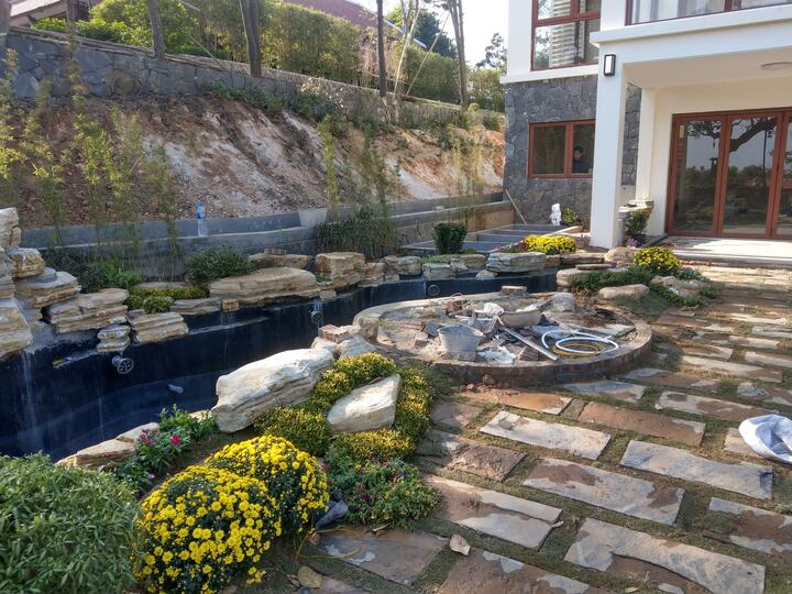 Xây dựng tiểu cảnh: Đá ong xám là vật liệu lý tưởng để xây dựng các tiểu cảnh như thác nước, hồ cá, hòn non bộ.
