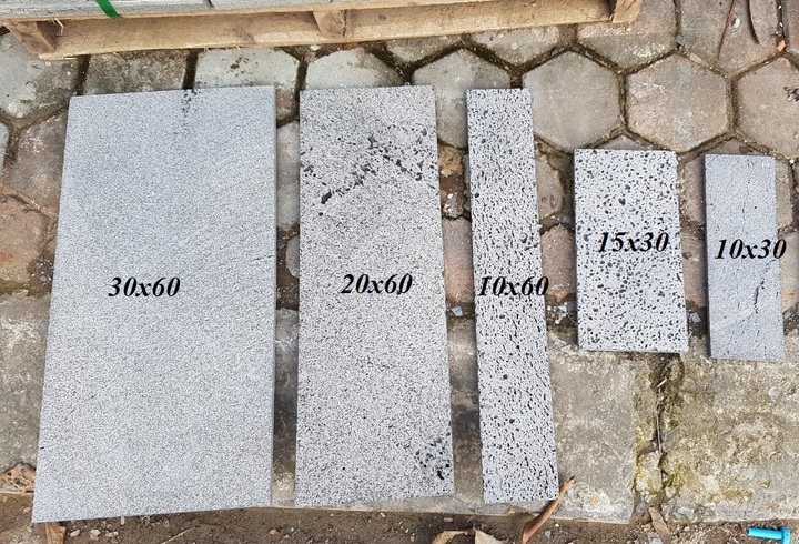 Thông thường, đá ong xám được cắt thành các kích thước tiêu chuẩn để thuận tiện cho việc thi công và lắp đặt. Một số kích thước phổ biến bao gồm:
