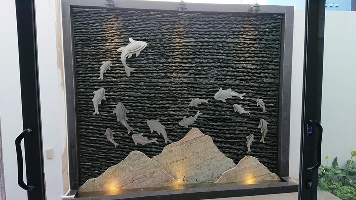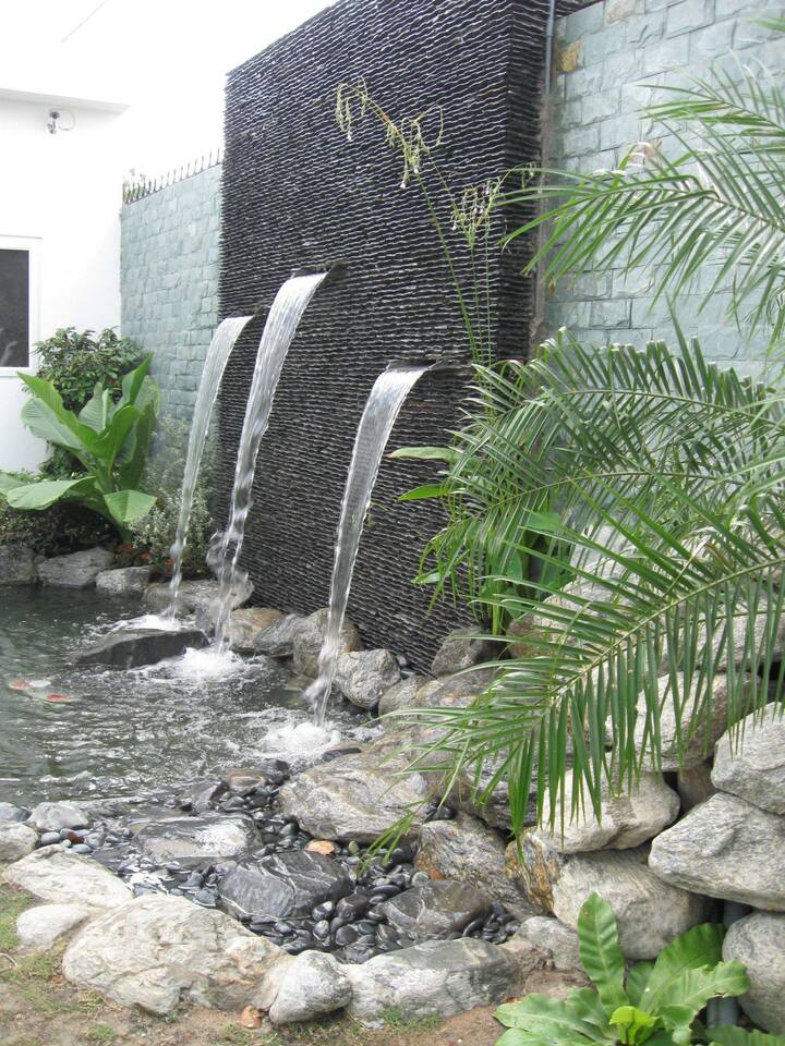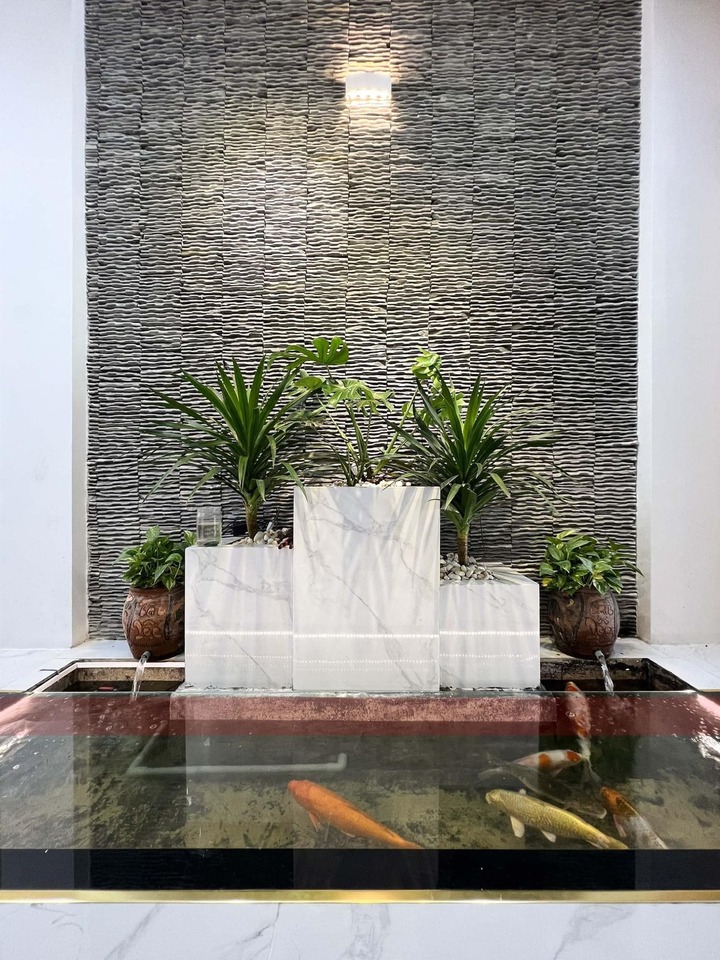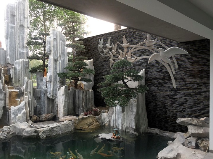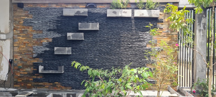 Ốp tường trang trí sân vườn, tiểu cảnh: Kết hợp với cây xanh, thác nước để tạo không gian thư giãn, gần gũi với thiên nhiên.